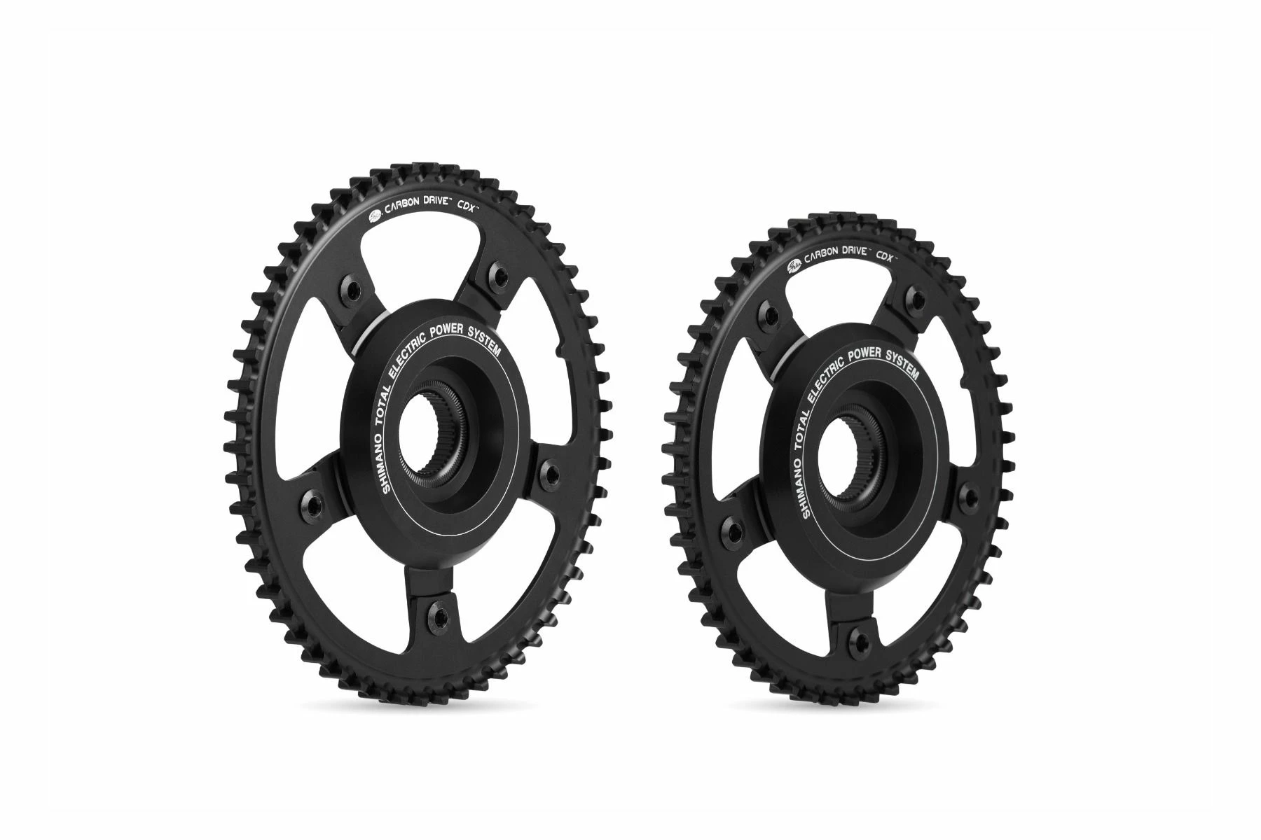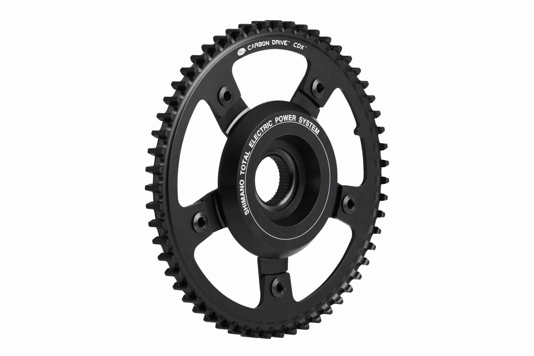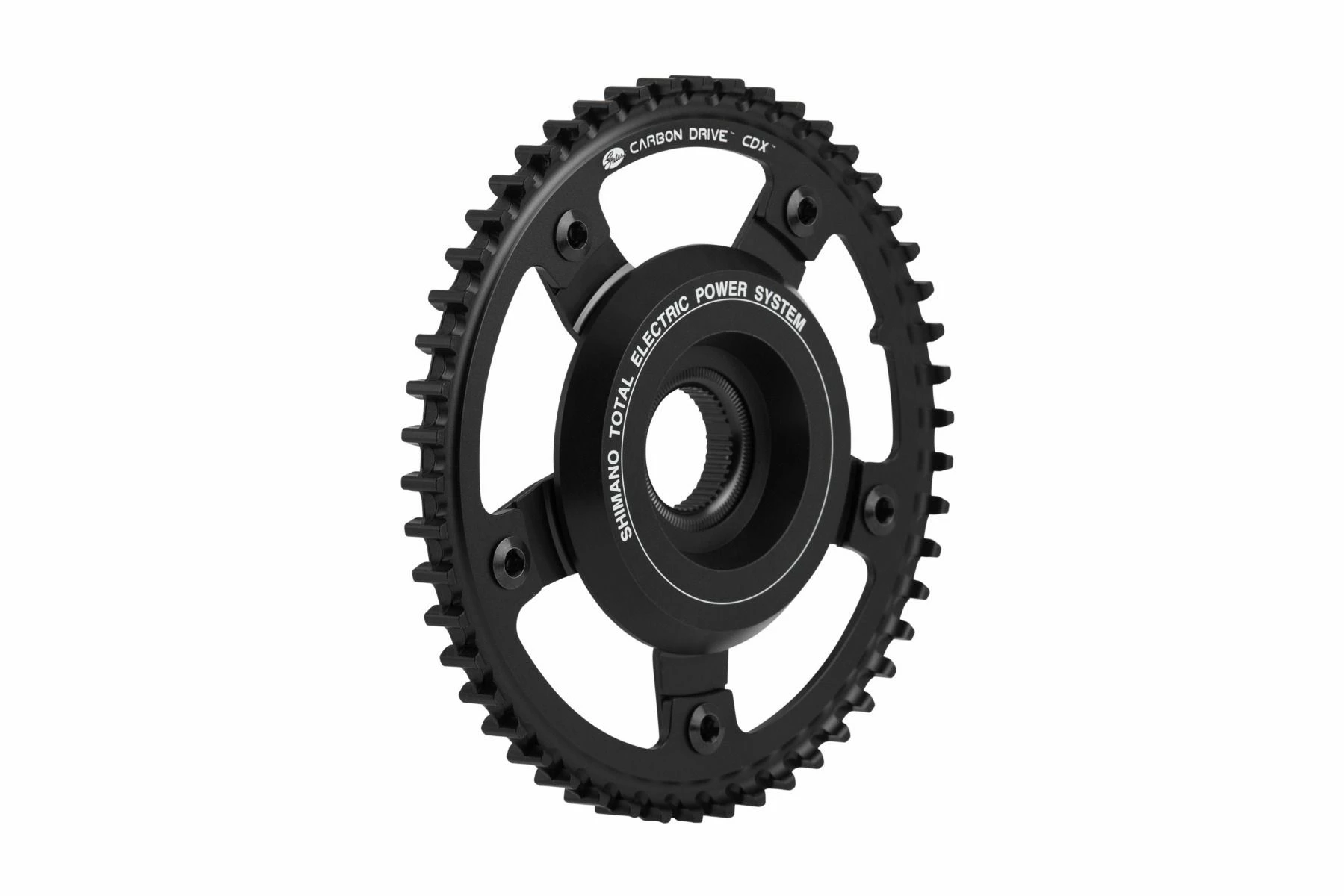 Gates CDX Tandhjul til Shimano DI2 montering fås i 2 størrelser med 50 eller 55 tænder, og det er monteret på en Spider til STePS.