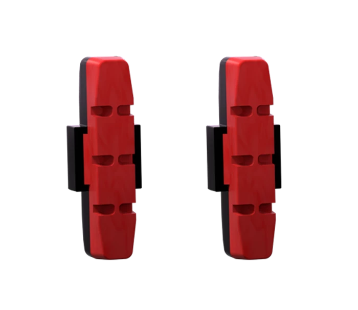 De orginale Magura fælgbremseklodser i hard compund – hård blanding gummi for optimal deceleration og minimal slitage, DIN-testede, 50mm – de røde klodser er egnet til ture med mange start og stop grundet deres sammensætning