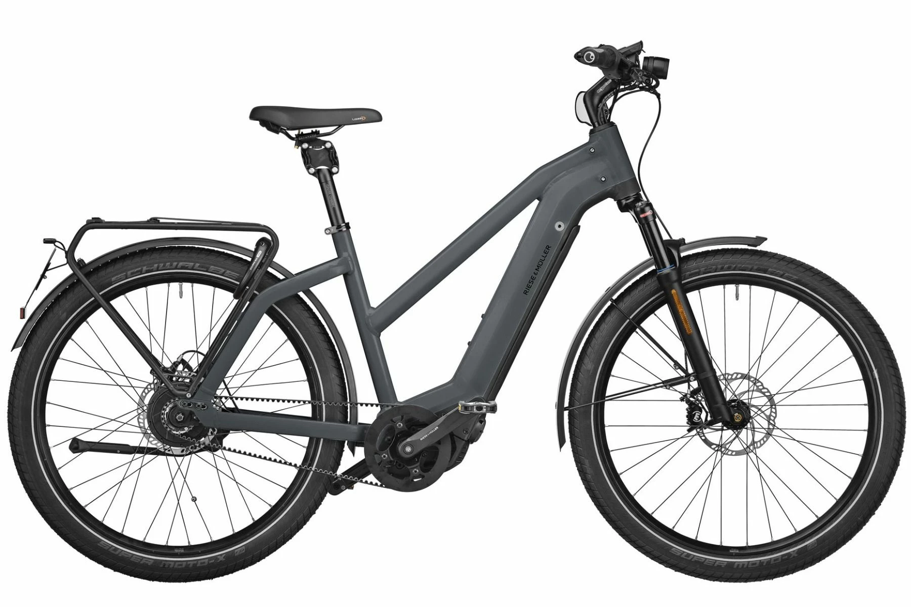 Riese & Müller Charger3 GT Vario er udstyret med en 36 V / 350 Watts Bosch Performance Speed centermotor (assistance op til 45 kmt) og du kan nemt køre op til 60 km på et 14 Ah / 500 Wh batteri – Motoren sørger selv for at balancere batteriforbruget jævnt mellem begge batterier, så ingen af dem bliver overbrugte. Bosch Performance Speed motoren trækker direkte på kranken, og giver dig med rotations- og momentsensorerne en god og komfortabel føling med motorens kraft.