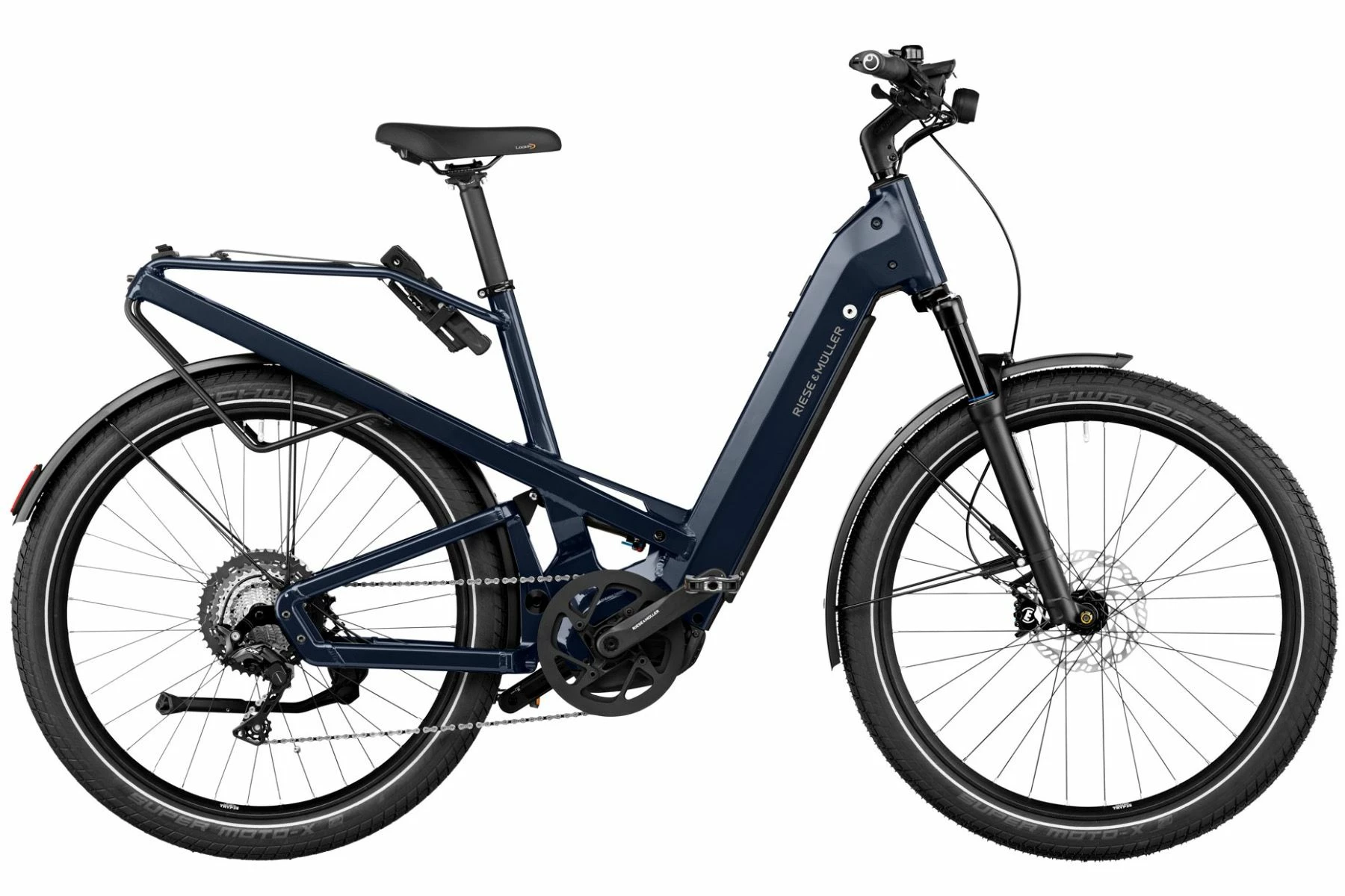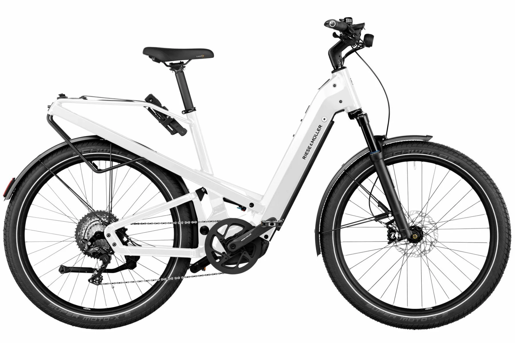 På en Riese & Müller Homage Touring har du udstyr som Shimano Deore XT 11 udvendige gear, Magura MT4 hydrauliske skivebremser, integeret lygtesystem med Supernova’s M99-lygtesæt, Suntour Aion affjedret forgaffel og X-Fusion 02 bagdæmper – hjulene er 27,5″ monteret med Schwalbe Super Moto-X punkterbeskyttende dæk. Som en af de få elcykler så har du ligeledes mulighed for at vælge modellen med både med Bosch’s nye Kiox display, nyon og Bosch’s “Anti-Braking-System” (ABS) så du kan bevæge dig mere sikker ud på vejene.