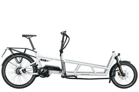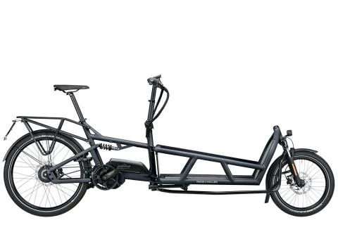 | Riese & Müller’s sidste og nok fedteste skud på stammen af cargo / lad elcykler – Riese & Müller Load 75 Vario HS – den har lige et 15 cm længere lad, der sammen med sin “footwell” gør at du kan have 3 børn med og stadig nyde godt af den samlet transportvægt på hele 200 kg med fuld affjedering. Med Riese & Müllers Load 75 Vario HS vælger man ikke bare en elcykel – man vælger en elcykel med kvalitet helt ud i møtrikkerne – Riese & Müllers Load’s ramme er lavet af letvægts aluminium, hvilket gør den til en meget komfortabel elcykel, der selv med de tre børn og dagligvarer på ladet har gode køreegenskaber. Riese & Müllers Load 75 Vario HS er udstyret med en 36 V / 350 Watts Bosch Performance Speed centermotor, med assistance op til 45 kmt og du kan nemt køre op til 60 km på et 14 Ah / 500 Wh batteri – er det ikke nok? så har du også mulighed for at vælge den med 1000wh. Centermotoren trækker direkte på kranken, og giver dig med rotations- og momentsensorerne en god og komfortabel føling med motorens kraft. |
