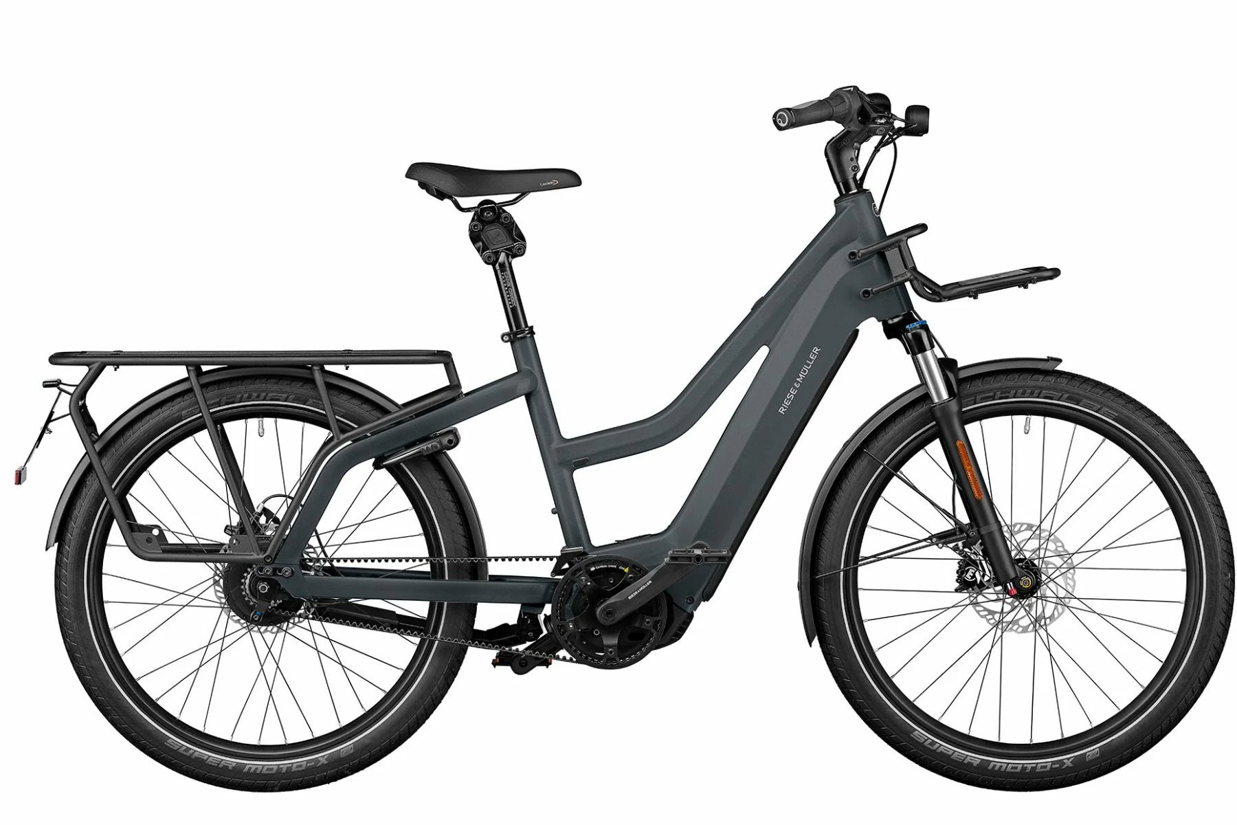 Riese & Müller’s Multicharger GT Vario HS er et fedt træk væk fra den “traditionelle cykel” – Riese & Müller Multicharger’s omhyggeligt udformede udstyr velegnet til de store transporter med varer eller familien – selv om den ikke er længere end den traditionelle Charger-serie, som gør at Riese & Müller Multicharger GT er sikker og fleksibel at håndtere – uanset om du kører meget, har du mange varer eller begge dele. Riese & Müller Multicharger GT fejer med sit integreret downtube batteri de andre Touring elcykler af banen – design kombineret med sit trinløse Nuvinci N380 gear og det vedligeholdesesfrie Gates Carbon Remtræk så er Riese & Müller Multicharger GT Vario HS er ren fornøjelse med minimal vedligeholdelse og kvalitet helt ud i den mindste møtrik.