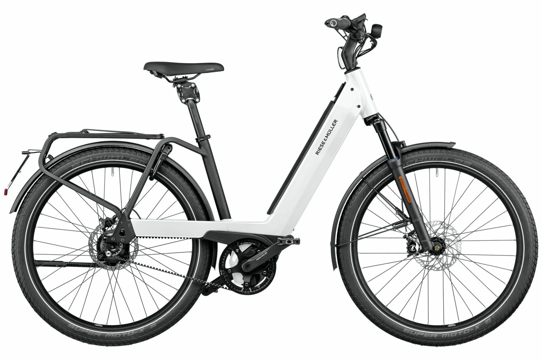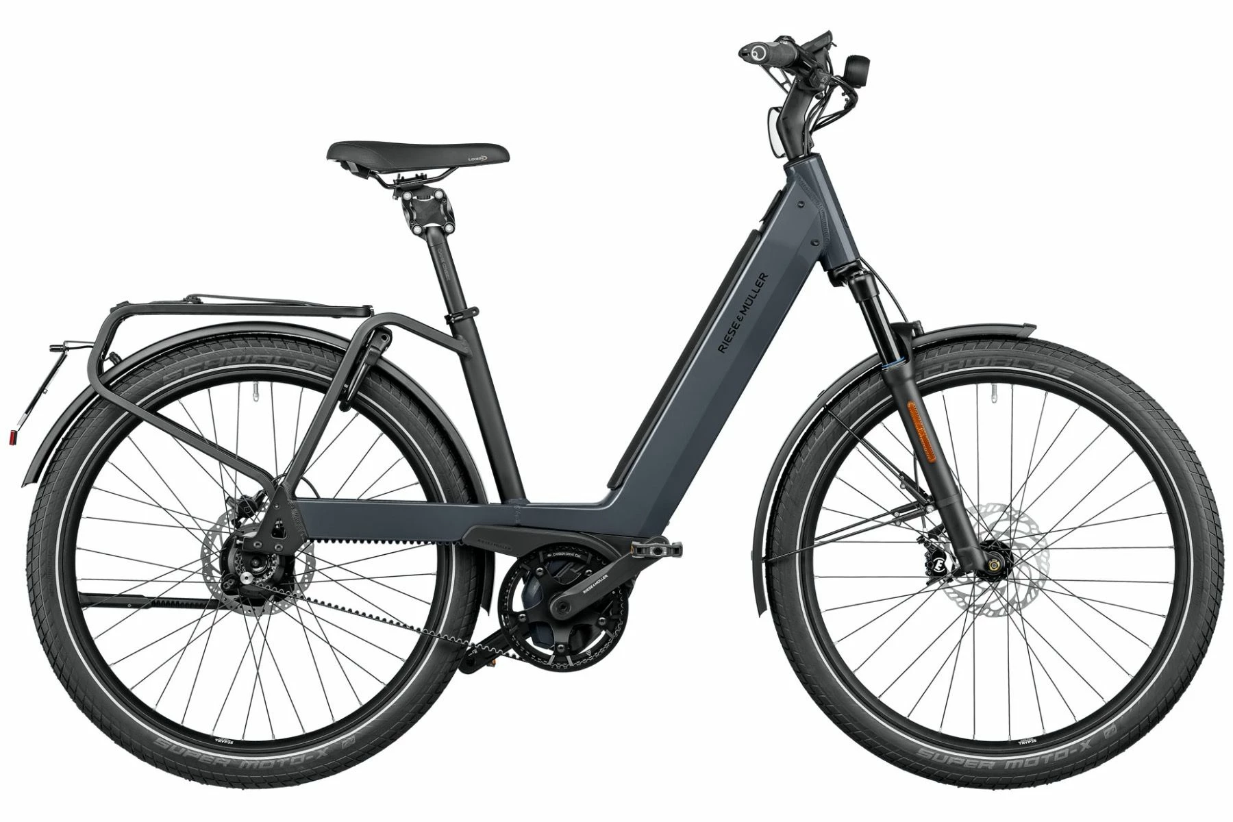 Riese & Müllers Nevo GT Rohloff HS er lige som de øvrige Nevo-modeller udstyret med Magura MT4 skivebremser, integreret lygtesæ, one-key system og affjedering i forgaflen (Suntour XCR32).