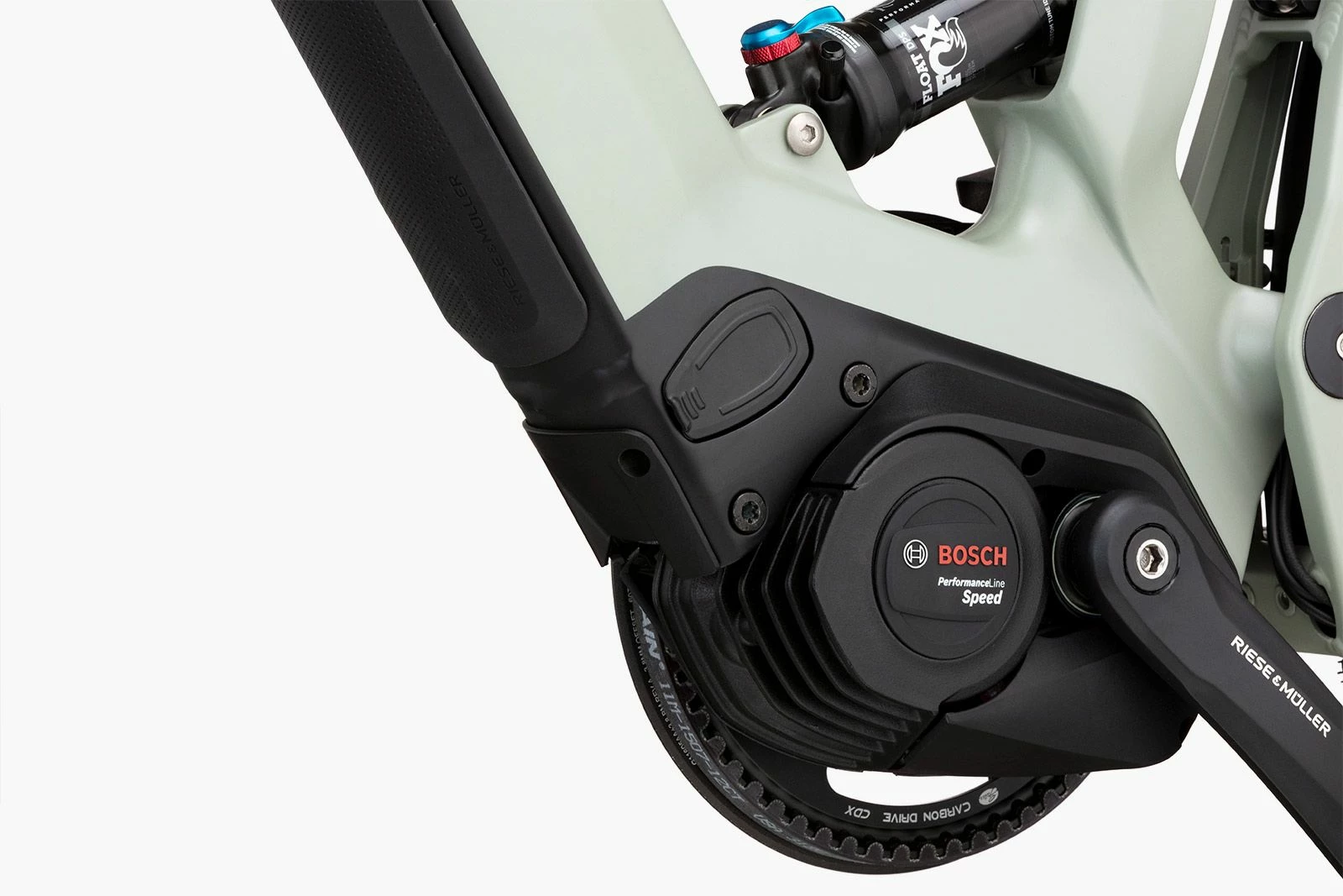 Riese & Müller Superdelite GT Rohloff er udstyret med den nye 36 V / 250 Watts Bosch Performance CX centermotor (4th gen.) og du kan nemt køre op til 180 km på de 31 Ah / 1125 Wh batteri du har at gøre godt med. Det er særdeles lækker til de rigtig lange ture, eller hvis du ønsker speed-versionen af Riese & Müller Superdelite GT Rohloff – Motoren sørger selv for at balancere batteriforbruget jævnt mellem begge batterier, så ingen af dem bliver overbrugte. Bosch Performance CX motoren trækker direkte på kranken, og giver dig med rotations- og momentsensorerne en god og komfortabel føling med motorens kraft.