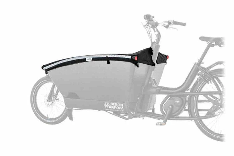 Har du ikke kalechen med, og vil sikre dig at man ikke bare lige kan tage ting op af din Urban Arrow? så skal du bruge et Urban Arrow Family Boxcover, som nemt og hurtigt monteres på ladcyklen. Det beskytter blandt andet mod regn og andet. Skal du hente ungerne, så åbner du enden over bænken, ruller og spænder den fast. Så er der også plads til 2 børn.