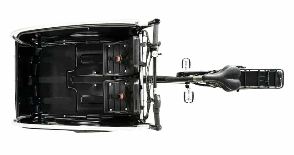 Ungerne kan nemt selv kravle op kassen via den frontmonteret stigbøjle, og kan nyde turen på de 2 eller 4 sæder med 5 punktssele, hvor der kan købes flere forskellige sæde typer. Skal i have et mindre barn med så kan i vælge at udstyre den med en Maxi Cosi adapter til bilsædet, eller sætte en Weber baby indsats på et ekisterende sæde.